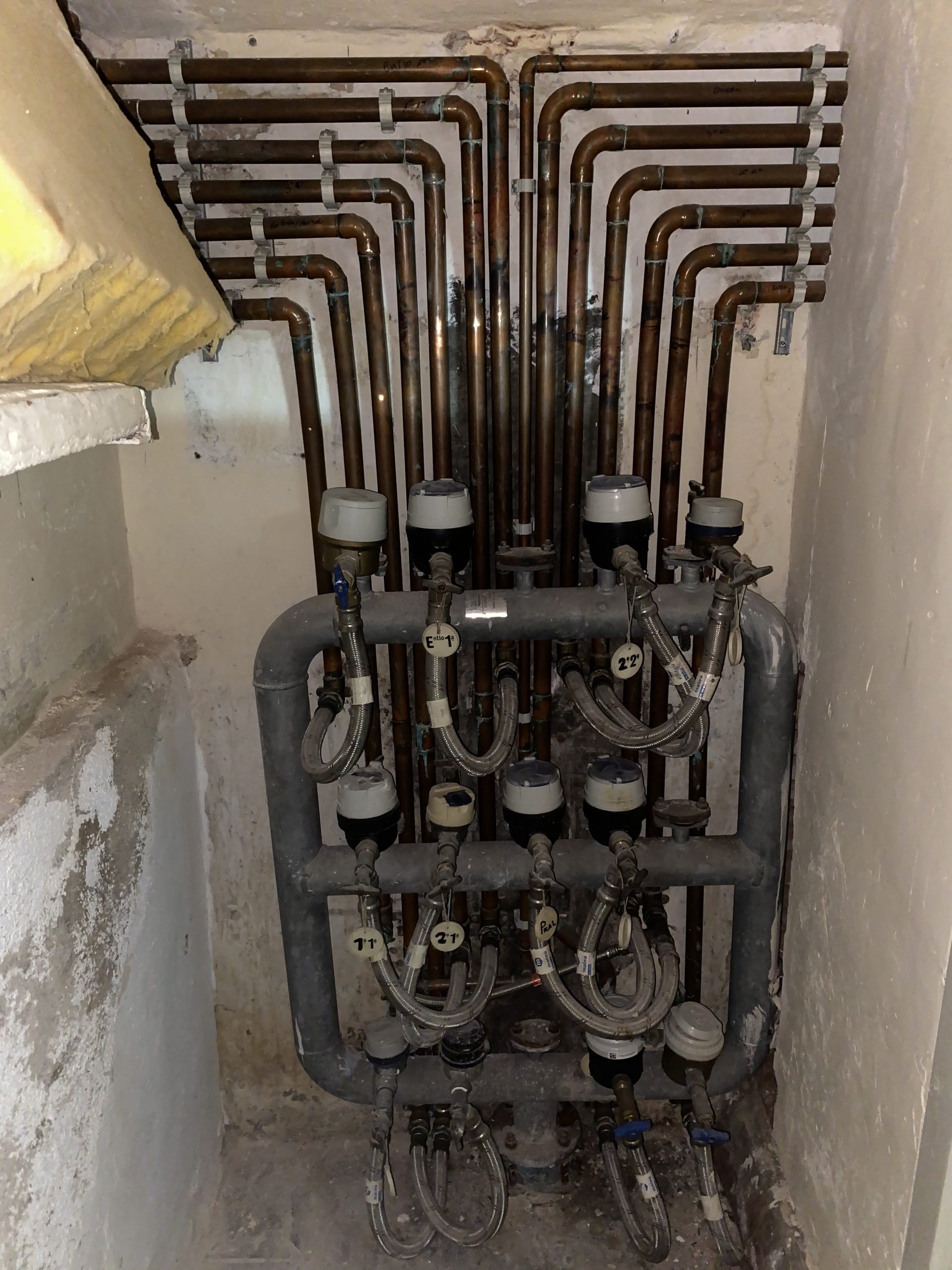 Realización de instalaciones comunitarias de suministro (agua, gas, luz, antena, etc) o de evacuación (red de saneamiento, conductos de ventilación, etc.).